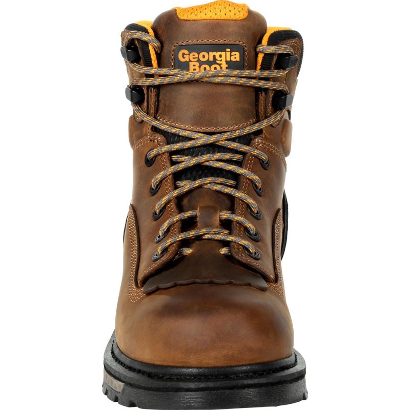 The interior of this 6" composite toe work boot is lined in a soft performance mesh and equipped with the Georgia Waterproof System. It also features a molded 3-D counter pocket for added heel padding and stability and the AMP LT memory foam insole for all day comfort.