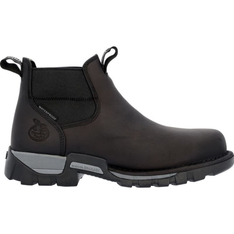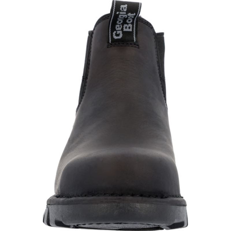 A lightweight chelsea work boot with heavy-duty performance features. The Georgia Boot Eagle One steel toe waterproof Chelsea work boot is built with a combination cement and San Crispino construction. The full-grain SPR leather upper features twin gore panels and nylon pull tabs for an easy on of the boot.