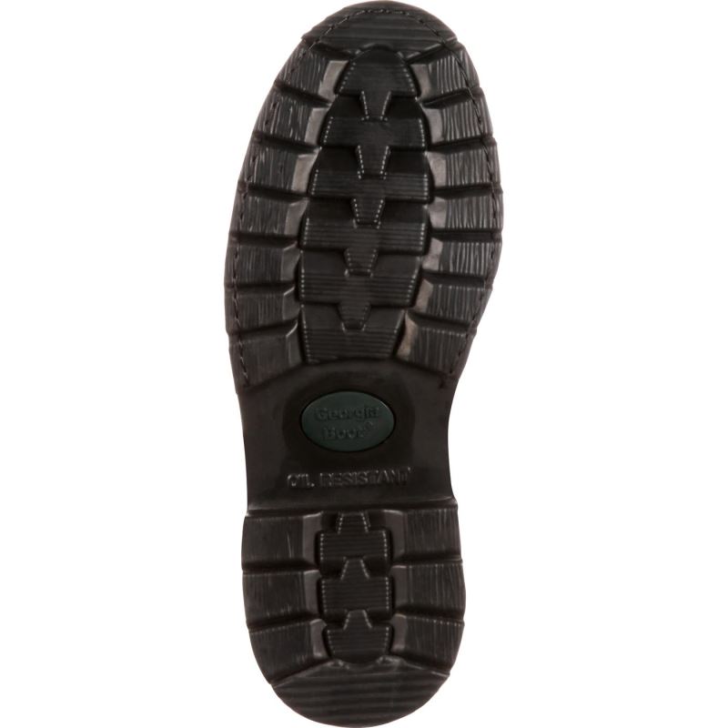 The mesh lining of these men's work boots has been made from a lightweight material; you won't have to worry about it feeling cumbersome; plus this material is able to wick away moisture. To keep your feet comfortable, Georgia inserted a Comfort Core insole; its cushioning will comfort your feet and help absorb shock. It also has an Air Flow System that pushes air up through the insole to keep your feet dry, comfortable and cool.