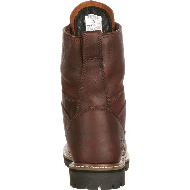 This chocolate brown boot is equipped with a Georgia waterproof system. You know your feet will stay dry in a variety of wet and muddy conditions if you're wearing this men's boot.