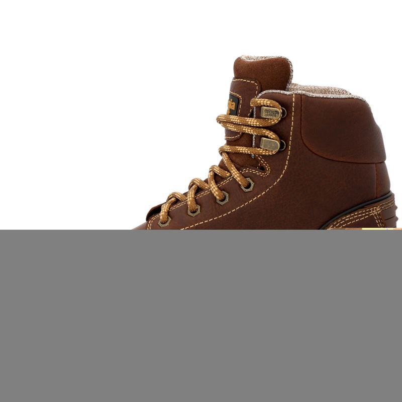 This is women's 6" wedge boot is by far one of the most comfortable women's waterproof work boots on the market. The interior is packed with comfort features to keep your feet content as you put in those long hours. Armed with the Georgia Waterproof System, you can confidently work in wet conditions. A padded 3-D counter pocket locks your heel into place and provides added support while the AMP LT memory foam insole cradles your foot in comfort.