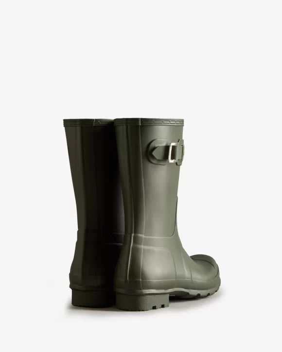 The Men's Original Short Rain Boot Boot takes the iconic design of the Tall Boot and scales it down for a versatile and comfortable style. From jeans to chino's, styling is easy thanks to the mid-calf height. Formed of natural rubber, each boot is handcrafted and assembled over three days before being vulcanized for superior protection. Featuring the Hunter Original tread pattern, and a comfortable polyester lining, this classic olive waterproof boot is an everyday essential.