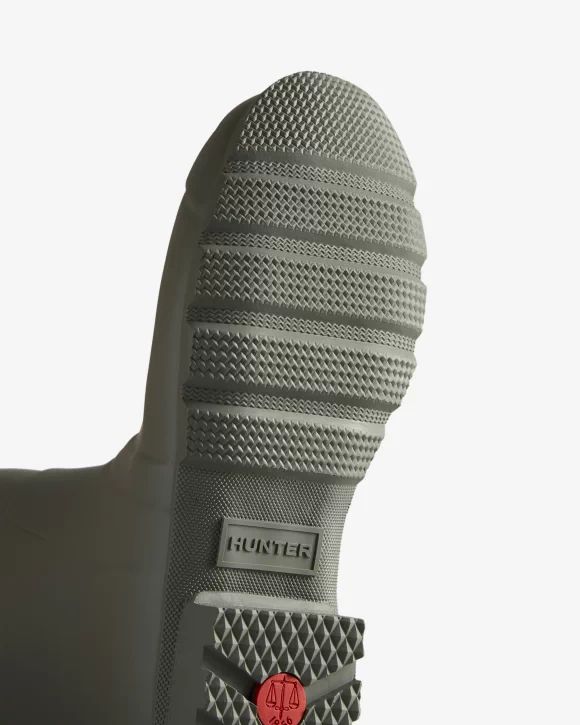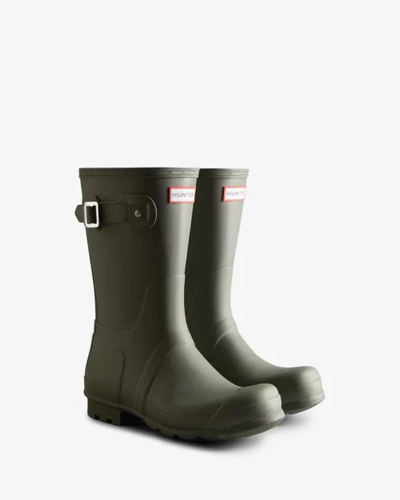 The Men's Original Short Rain Boot Boot takes the iconic design of the Tall Boot and scales it down for a versatile and comfortable style. From jeans to chino's, styling is easy thanks to the mid-calf height. Formed of natural rubber, each boot is handcrafted and assembled over three days before being vulcanized for superior protection. Featuring the Hunter Original tread pattern, and a comfortable polyester lining, this classic olive waterproof boot is an everyday essential.