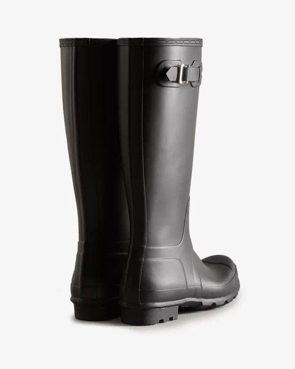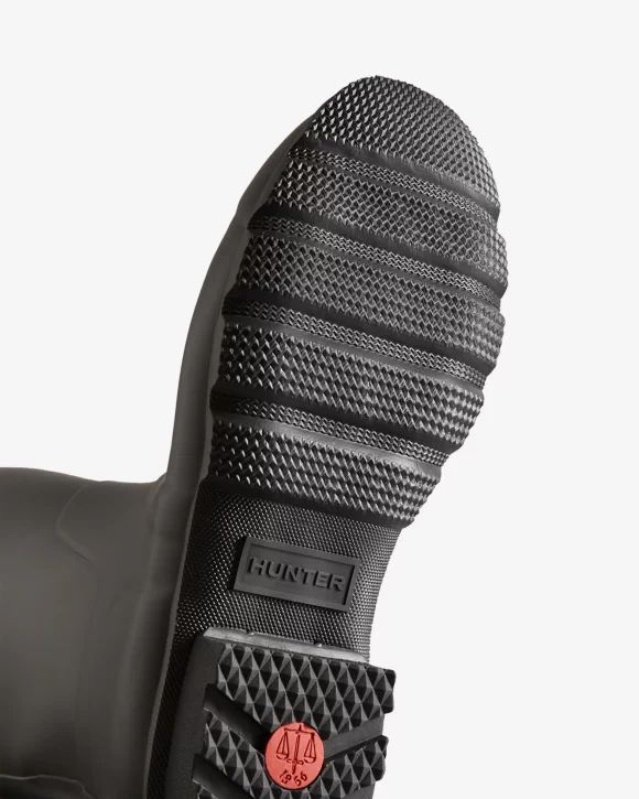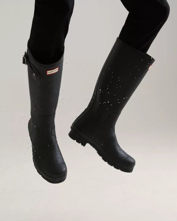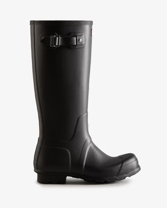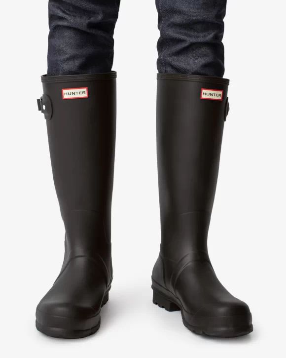Designed to shield and protect from the elements, the Original Tall Rain Boot Boot has been at the heart of the Hunter Original brand since its introduction in 1956. Formed of natural rubber, each pair is made from 28 hand-cut parts and assembled over three days on an aluminium last bespoke to Hunter, before being vulcanized for superior protection. Featuring the Hunter Original tread pattern, and a comfortable polyester lining, this men's waterproof boot with a classic black matte finish is a wet weather necessity.