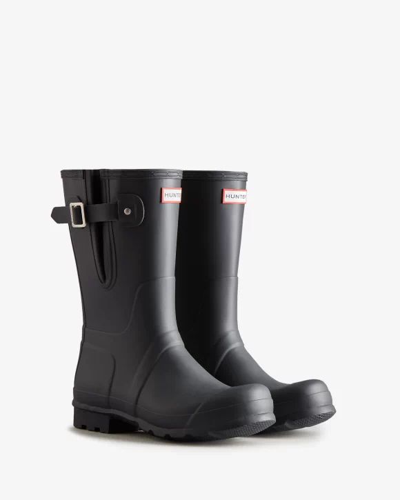 Designed for a flexible fit the Original Short Side Adjustable Boot mirrors the iconic Original Tall with the addition of an expandable gusset at the side. Perfect for a wider calf, these matte slate grey rain boots offer ease of movement and adjust from the traditional tailored Hunter fit to a more relaxed shape when the gusset is fully extended. Handcrafted from natural rubber, the Original Adjustable boot is fully waterproof with a 100% recycled polyester lining and the signature Hunter Original tread.