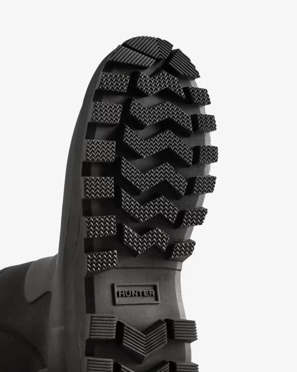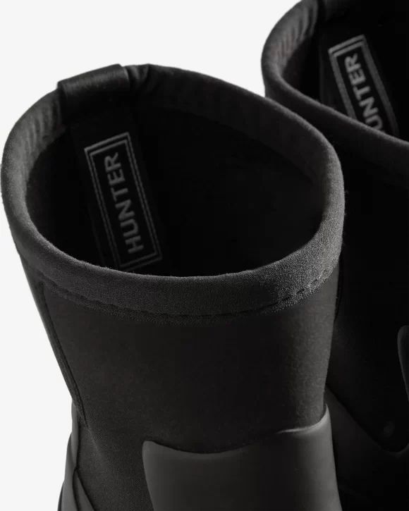 The City Explorer is the ultimate boot for city streets. Built on a new chunky rubber outsole with an exaggerated heel and traction-enhancing rubber, it features a neoprene upper and recycled lining made from post-consumer waste. Bold tonal Hunter logos on the webbing finish the look.
