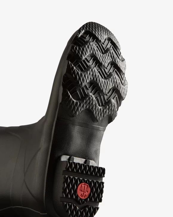 The Huntress Rain boot is a durable design, handcrafted from a soft rubber compound. This black style features a slightly lower leg length compared to the Original Tall and a wider calf for optimum comfort. The zigzag sole construction is robust and durable, offering high traction, ultimate grip which also allows for easy mud release.
