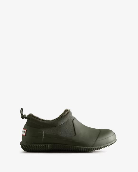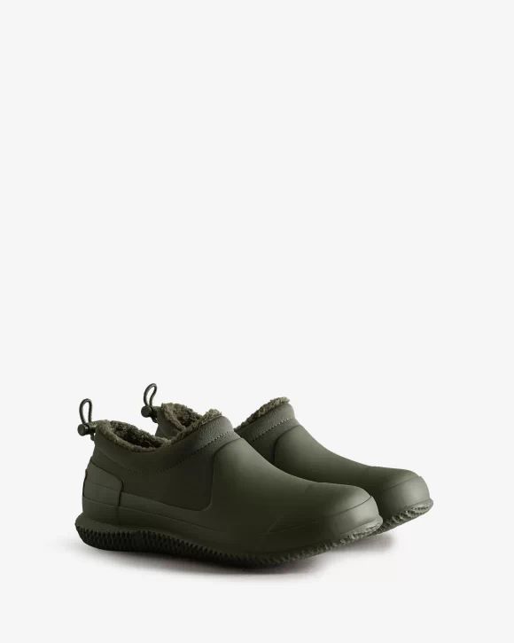 Take on the cold with these warm and snug slipper shoes. Merging two technical materials, the Original Vegan Shearling Shoe is handcrafted from natural rubber and insulating neoprene. A first for Hunter, the new 100% waterproof Vegan Shearling Shoe is equipped with a firm grip perfect for slippery winter days. Featuring a draw-cord, Vegan Shearling fleece lining and a thermal insulated sole, they can be worn in temperatures as low as -5degree (23). In a stylish black, choose this clog for your next frosty outing or simply as a toasty pair of slippers for cozy nights in.