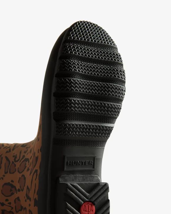 The iconic Hunter Original Tall Boot has been updated this season with a stylish leopard print. Crafted from natural rubber with a 100% recycled polyester lining and insole, this tall leopard print boot is handcrafted and assembled over three days on an aluminium last bespoke to Hunter.