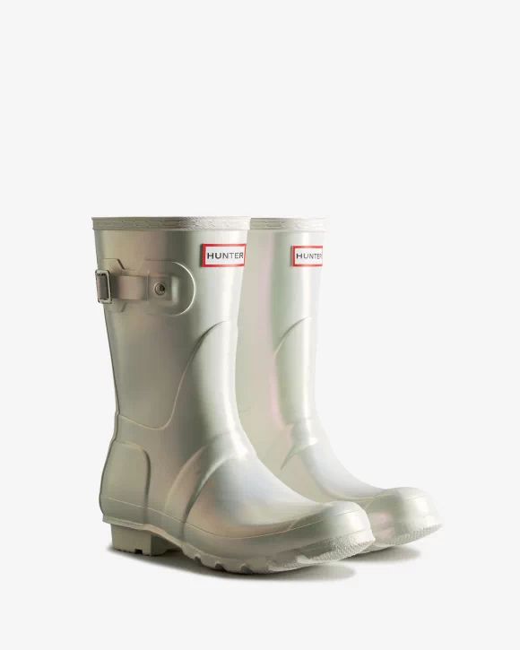 The Nebula Rain Boot is one of its kind, utilising a two-tone iridescent finish that shimmers through metallic light burgundy shades as it moves in the light, the Original Short Boot is given a glittering update. Perfect for wet weather conditions this women's Rain Boot is a shorter version of the iconic Hunter Original Tall Boot. Formed of natural rubber, each boot is handcrafted and assembled over three days before being vulcanised for superior protection. Featuring the Hunter Original tread pattern, and updated with an 100% recycled polyester lining and insole, this boot is a glimmering rainy-day necessity.