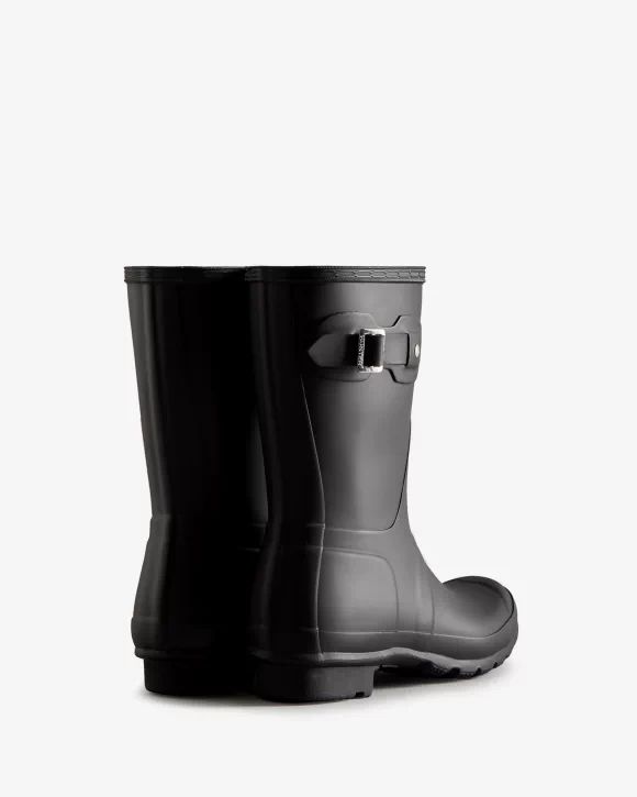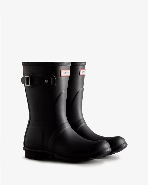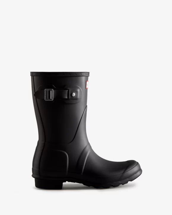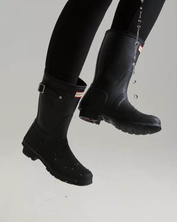 Perfect for wet weather conditions this women's Rain Boot is a shorter version of the iconic Hunter Original Tall Boot. Formed of natural rubber, each boot is handcrafted and assembled over three days before being vulcanised for superior protection. Featuring the Hunter Original tread pattern, and an updated 100% recycled polyester lining and insole, this matte pink waterproof boot is a rainy-day necessity.