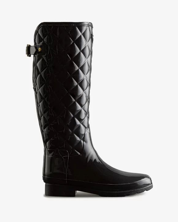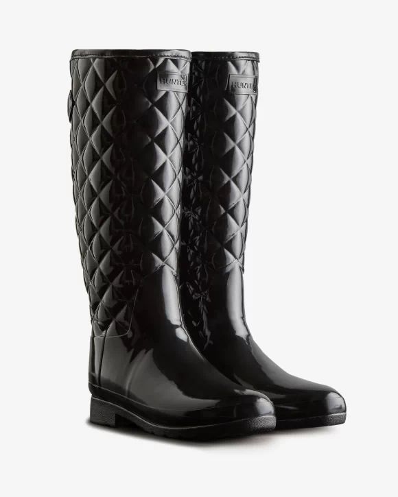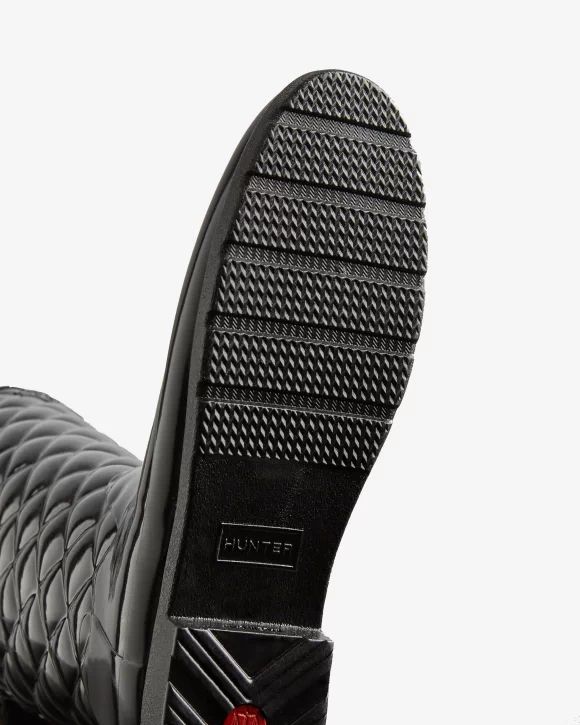 Merging style and practicality, the ultimate boot that takes you from day to night whatever the weather. Fashioned with a slim fit and a stylish quilted natural rubber upper, this handcrafted waterproof boot offers a sleek silhouette all whilst protecting from the elements. In a classic glossy black, the Women's Refined Slim Fit Quilted Tall Rain Boot Boot allows for all day comfort with its moulded footbed and adjustable gusset at the back. Perfect for days of shopping and rainy nights out, this knee length boot is a city-living essential.