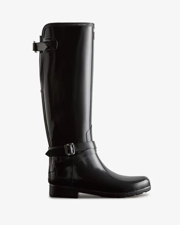 With a slimmer fit ideal for city-living, the Refined Tall Rain Boot Boot features a tailored shape, and is constructed from fewer rubber layers for a more lightweight feel. Handcrafted and fully waterproof, this Refined Tall boot features an adjustable buckle with gusset and decorative strap around the ankle, fusing fashion with function. With a glossy black finish, these sleek women's boots make a footwear statement.