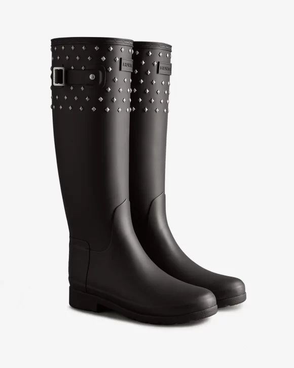 - Hunter | Women's Short Back Adjustable Gloss Rain Boots-Black | Canada Outlet