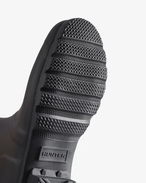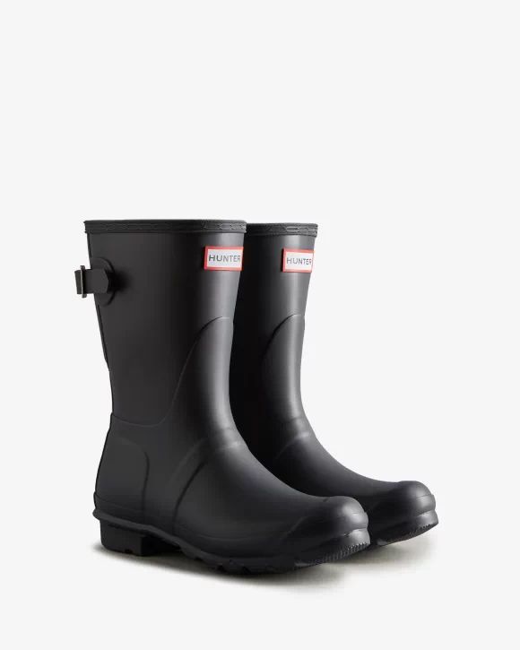Designed for a flexible fit, the Original Short Adjustable Boot mirrors the iconic Original Tall with the addition of an expandable gusset at the back and a shorter leg height. Perfect for a wider calf, these matte boots in classic black offer ease of movement and adjust from the traditional tailored Hunter fit to a more relaxed shape when the gusset is fully extended. Handcrafted from natural rubber, this Original adjustable short boot is fully waterproof with a comfortable polyester lining and the signature Hunter Original tread.