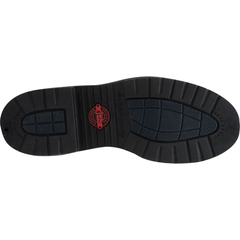 It provides maximum protection on the job with the steel toe and is built for comfort with the J-Max" Double Comfort System" that utilizes a mesh spacer foot bed cover that provides extra comfort and a healthy environment for the foot and the J-Max" removable orthotic inserts with J-Flex Flexible Comfort System" with Justin Jel" offers a multi-density polyurethane foot bed including low-density foam to cushion initial impact and provide energy return as you walk. The encapsulated air cells to virtually eliminate compression set so the bounce of cushioned energy return is present for the life of the boot strategically placed polyurethane gel pads in the heel arch and ball area to reduce muscle fatigue for unparalleled comfort. This boot also features the Dri-Lex" cooling system that pulls moisture from the inside of the shoe, leaving the insole dry and cool as well as a durable dual-density polyurethane slip resisting outsole. Meets ASTM F2413-11, I75, C75 EH safety footwear standards.