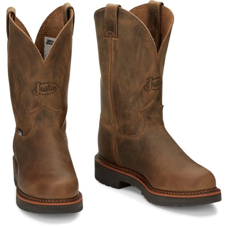 It's built for comfort with the J-Max" Double Comfort System" that utilizes a mesh spacer foot bed cover that provides extra comfort and a healthy environment for the foot and the J-Max" removable orthotic inserts with J-Flex Flexible Comfort System" with Justin Jel" offers a multi-density polyurethane foot bed including low-density foam to cushion initial impact and provide energy return as you walk. The encapsulated air cells to virtually eliminate compression set so the bounce of cushioned energy return is present for the life of the boot strategically placed polyurethane gel pads in the heel arch and ball area to reduce muscle fatigue for unparalleled comfort. This boot also features the Dri-Lex" cooling system that pulls moisture from the inside of the shoe, leaving the insole dry and cool as well as a durable dual-density polyurethane slip resisting outsole that meets ASTM F2892-11 for electrical hazard safety footwear standards.