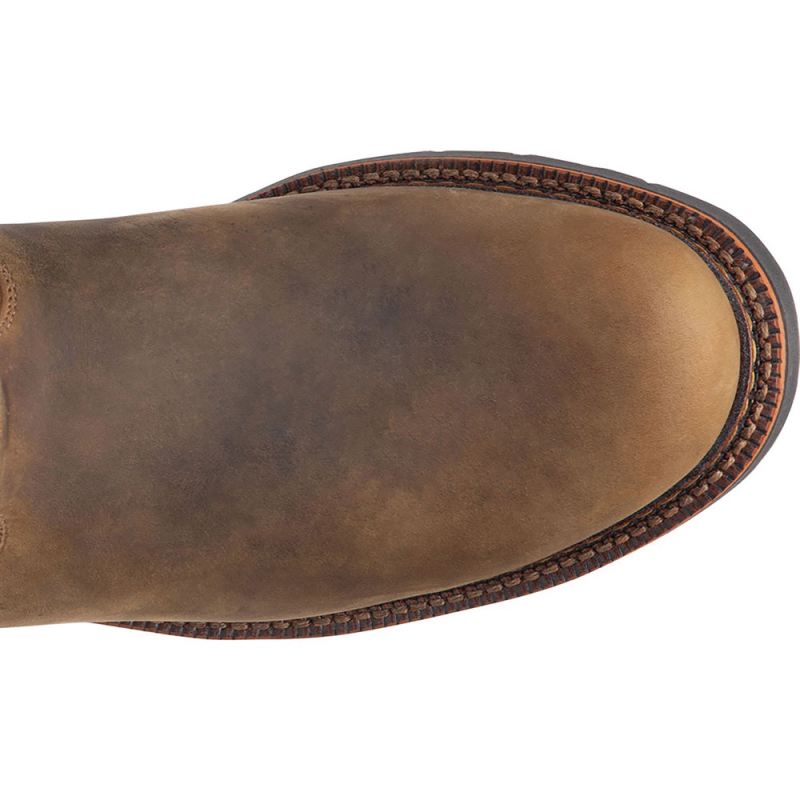 The Blueprint Pull On Tan Gaucho, 11" tall J-Max" men's pull-on work boot features a golden brown leather exterior crafted for durability.