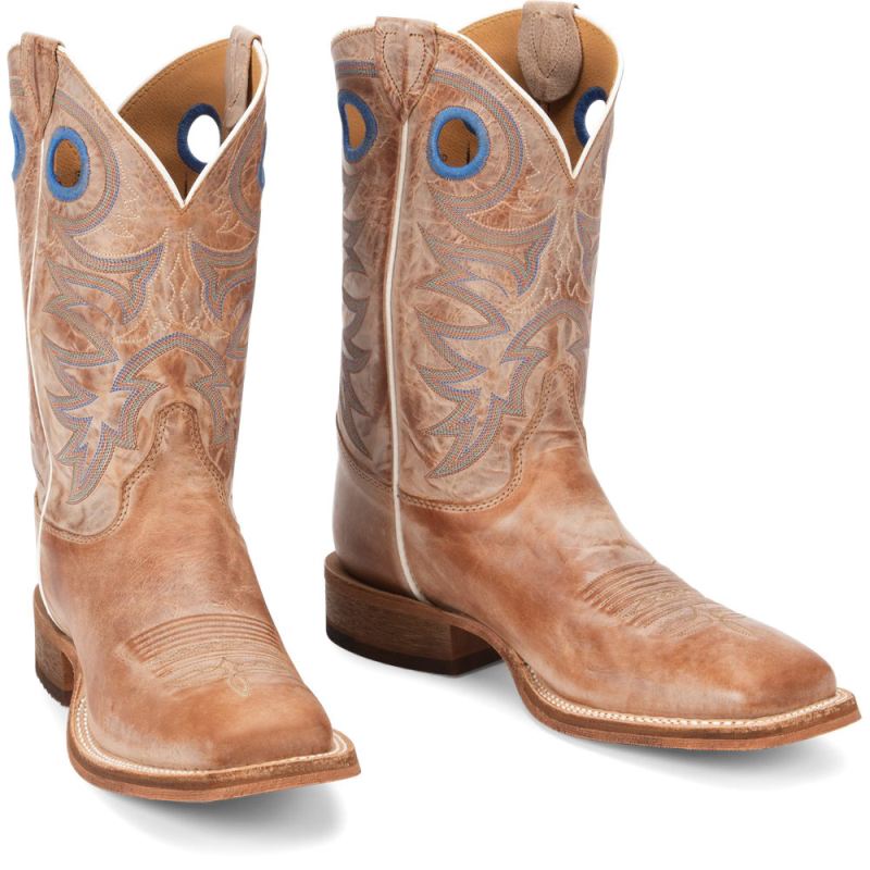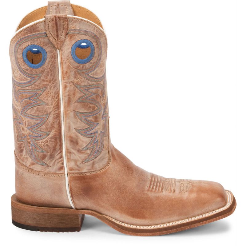 Featuring a beige chievo cowhide leather upper accented by a subtle bright blue stitch and the distressed texture of the leather gives this boot a lived-in look. Its wide square toe and long base block heel provide a relaxed fit and the J-Flex Comfort System" insole with the internal flexible midsole guarantees maximum comfort and pliability. The translucent rubber outsole provides traction and can easily move in and out of the stirrup.