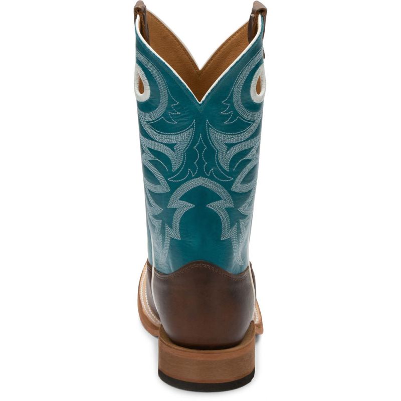 Featuring a denim-like candy blue leather upper with classic white stitching and a matte rich brown foot, this boot will definitely last more than 8 seconds. Its wide square toe and long base block heel provide a relaxed fit and the J-Flex Comfort System" insole with the internal flexible midsole guarantees maximum comfort and pliability. The translucent rubber outsole provides traction and can easily move in and out of the stirrup.