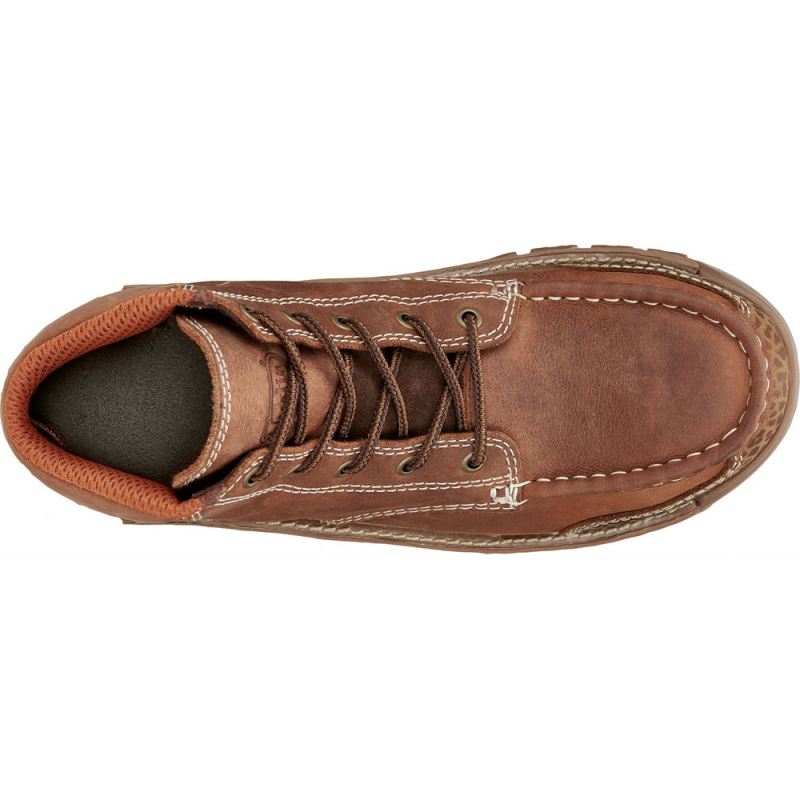 The 5" Corbett Waterproof EH Mocc Alloy Toe boot from our Stampede Light Duty collection is powered for work. It's fortified with an alloy safety toe, waterproof construction, and oil- and slip-resisting rubber outsole and is Electrical Hazard Rated to meet ASTM F2982-11 EH standards. A removable cushioned Ortholite" insert will keep you comfortable on-site, in the office and when it's time to call it a day. Contrasting printed accents give this cowhide leather boot an unexpected edge.