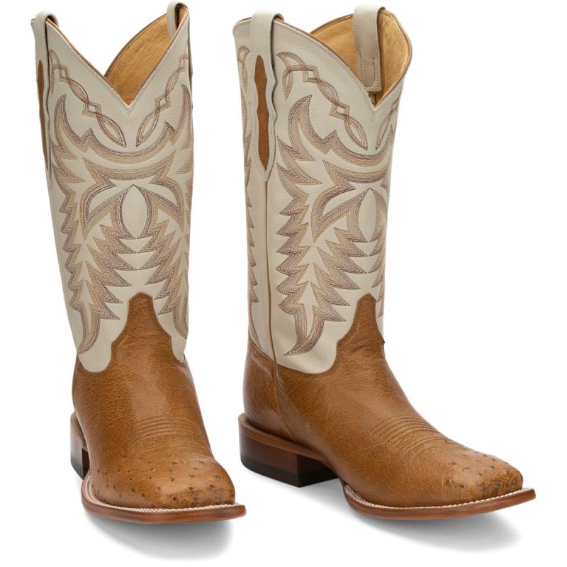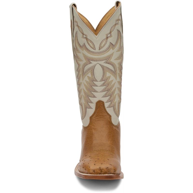 Refined boots designed to rise to any occasion. The 13" Pascoe boot in Antique Saddle features a smooth ostrich foot with a square toe, coupled with an expertly stitched ivory leather upper.