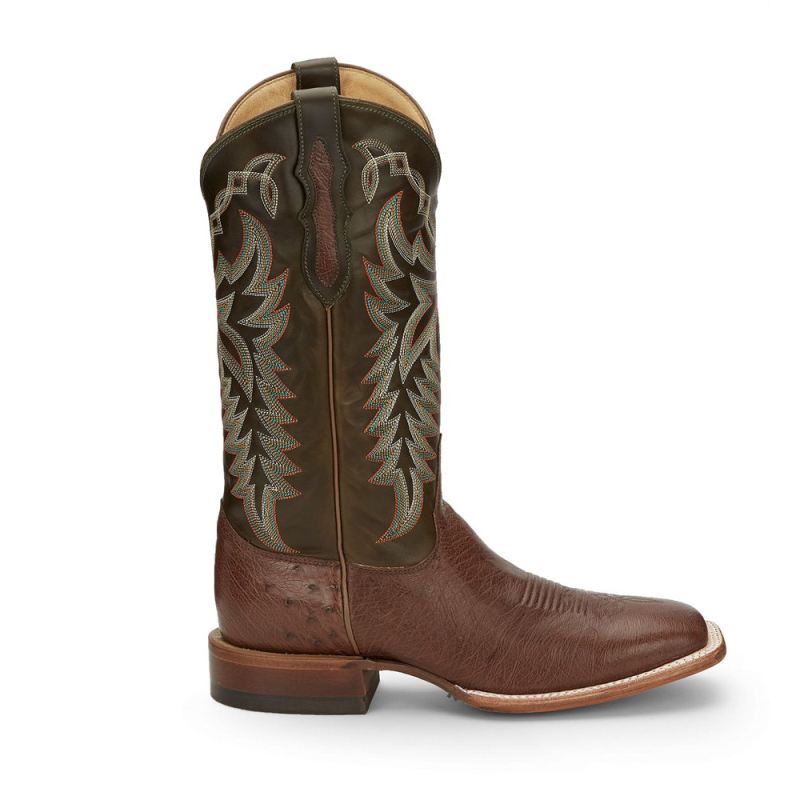 A distinctive style with authentic charm, the 13" Pascoe boot in Kango Brown pairs a refined smooth ostrich foot with a stitched leather shaft that comes alive in vibrant western colors.