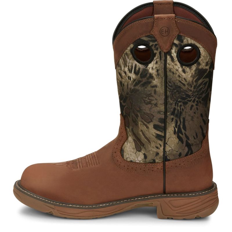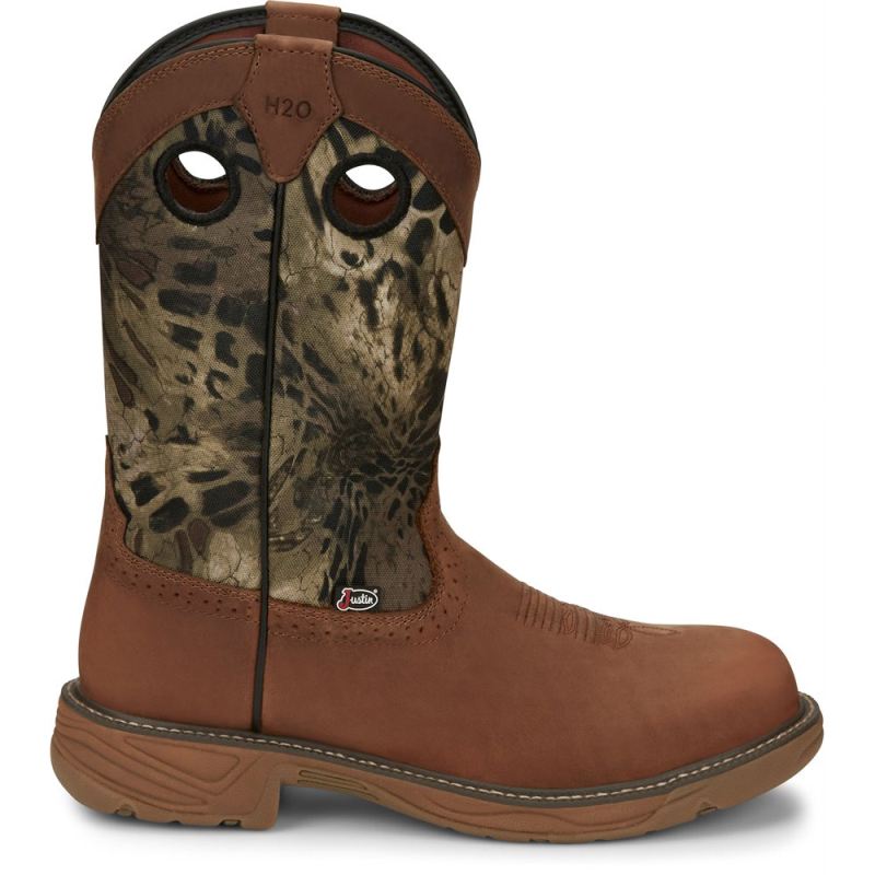 The 11" Stampede Rush Waterproof Round Toe boot in Barley Woodlands will take you from on-the-job to your weekend adventures.
