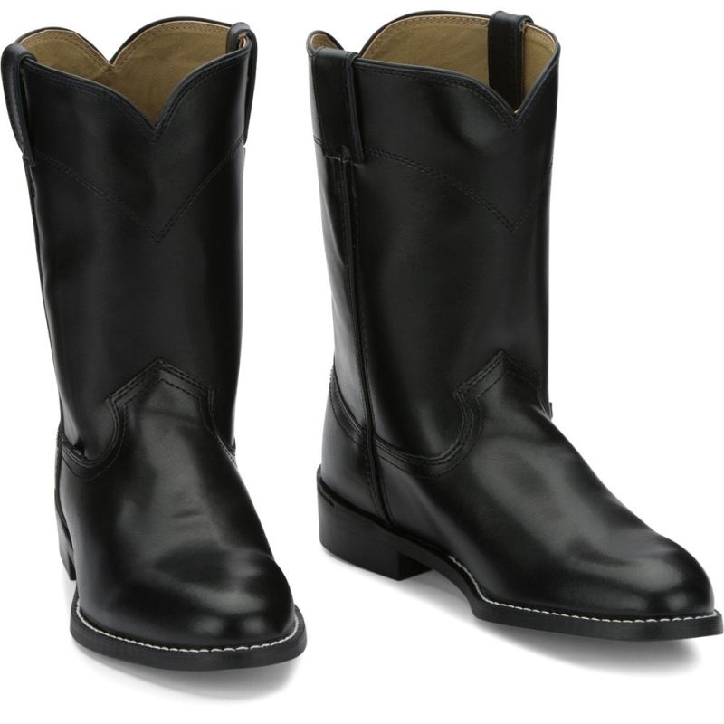 The Temple Black is a 10" tall Men's Farm &" Ranch cowboy boot with a classic silhouette.