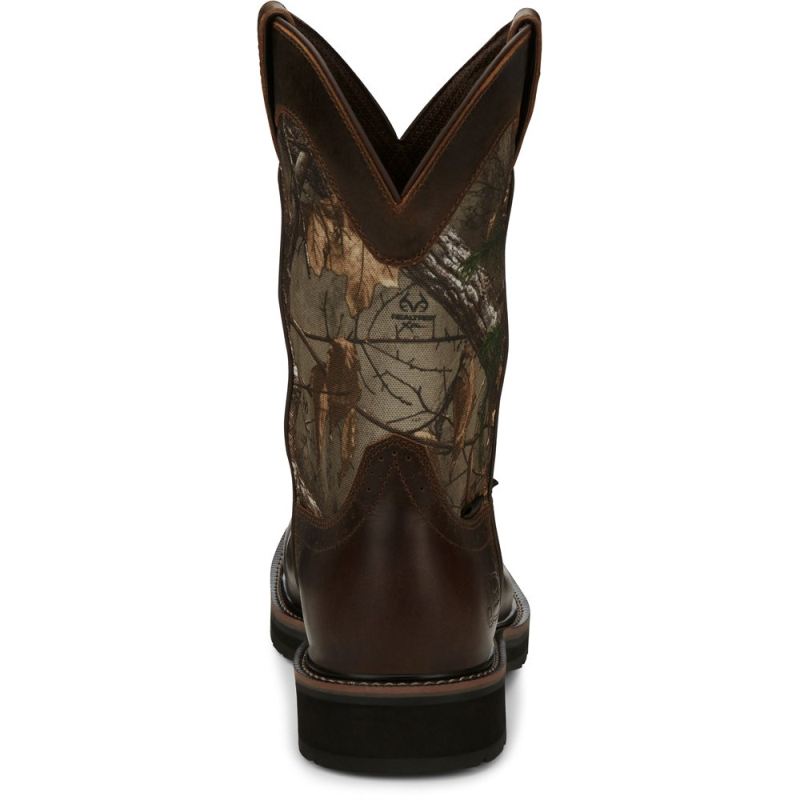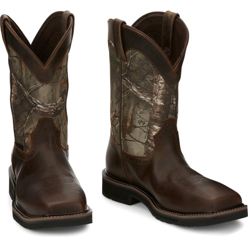 The RealTree" Mini X-Tra camo upper is paired with a polished brown leather vamp and collar. It features a waterproof exterior for added protection when up against the outdoor elements and a composition square toe for armor-like protection of your metatarsals that meets safety standards without weighing you down. The J-Flex Flexible Comfort System" insole cushions and supports your foot guaranteeing lasting comfort and meets ASTM F2413-11, I75, C75 EH safety footwear standards.