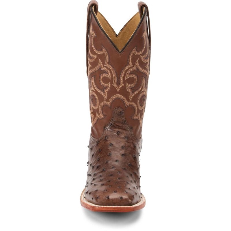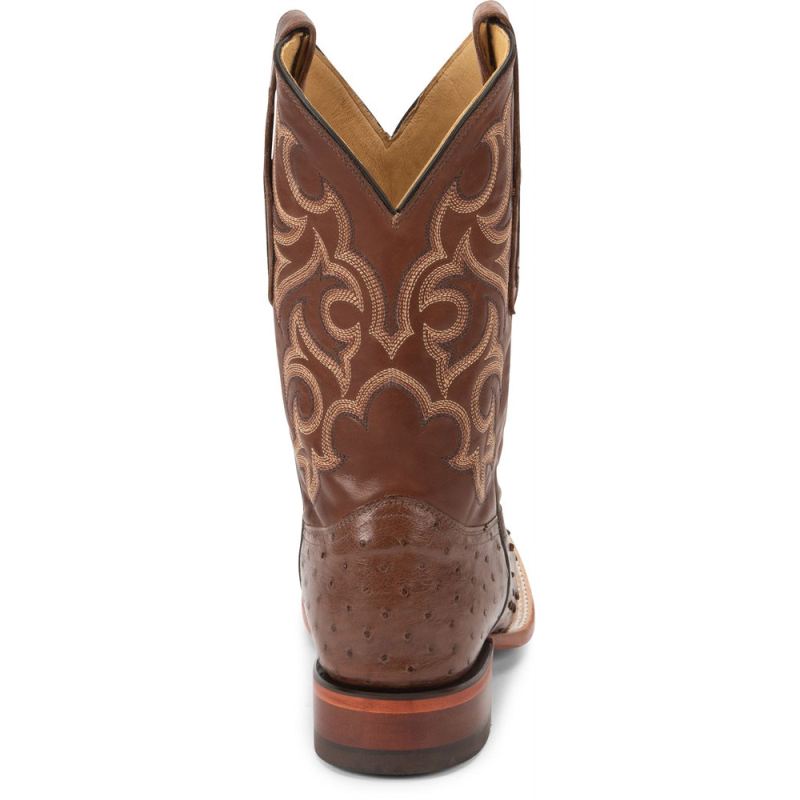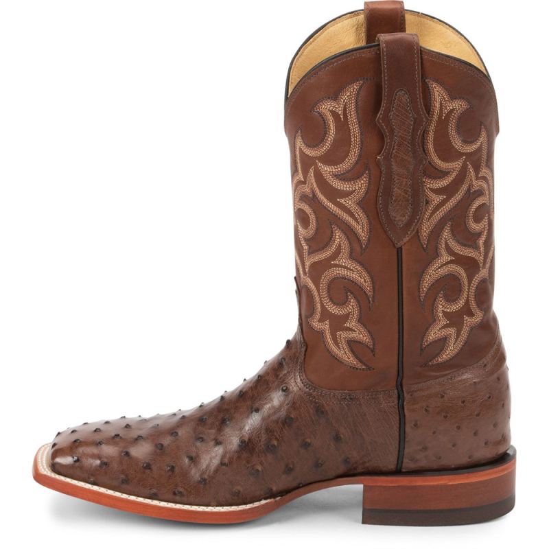 Featuring a rich mahogany leather upper with a golden tan stitch pattern and full quill ostrich foot, this boot is both lush and distinguished. Its made for comfort with a broad square toe and J-Flex Flexible Comfort System" insoles for added support.