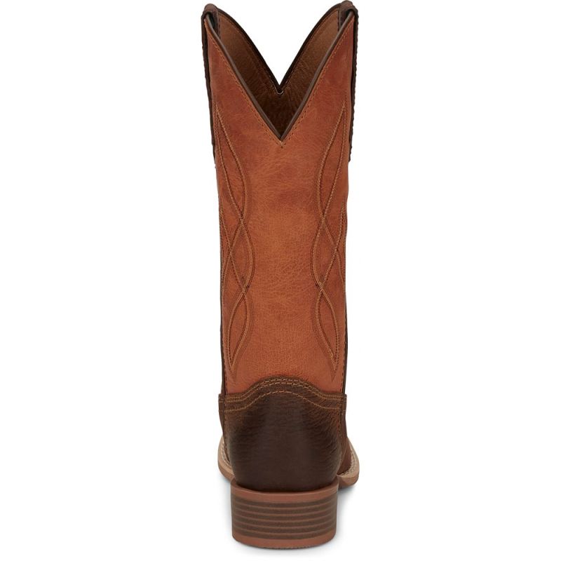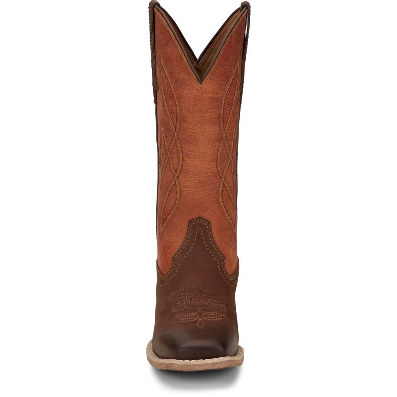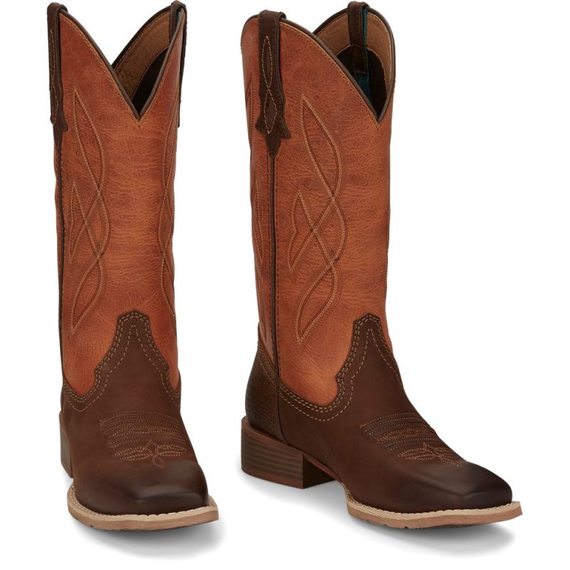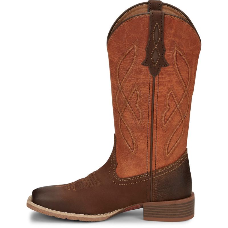The 12" tall Breakaway Moka Tan Justin Gypsy" Women's cowboy boot features an orange leather upper accented by a simple stitch pattern.