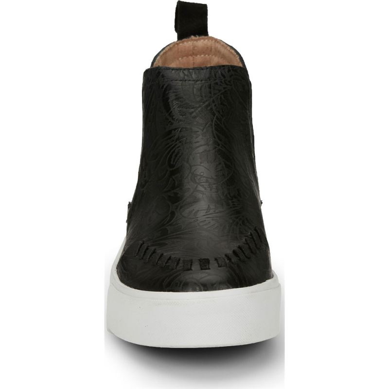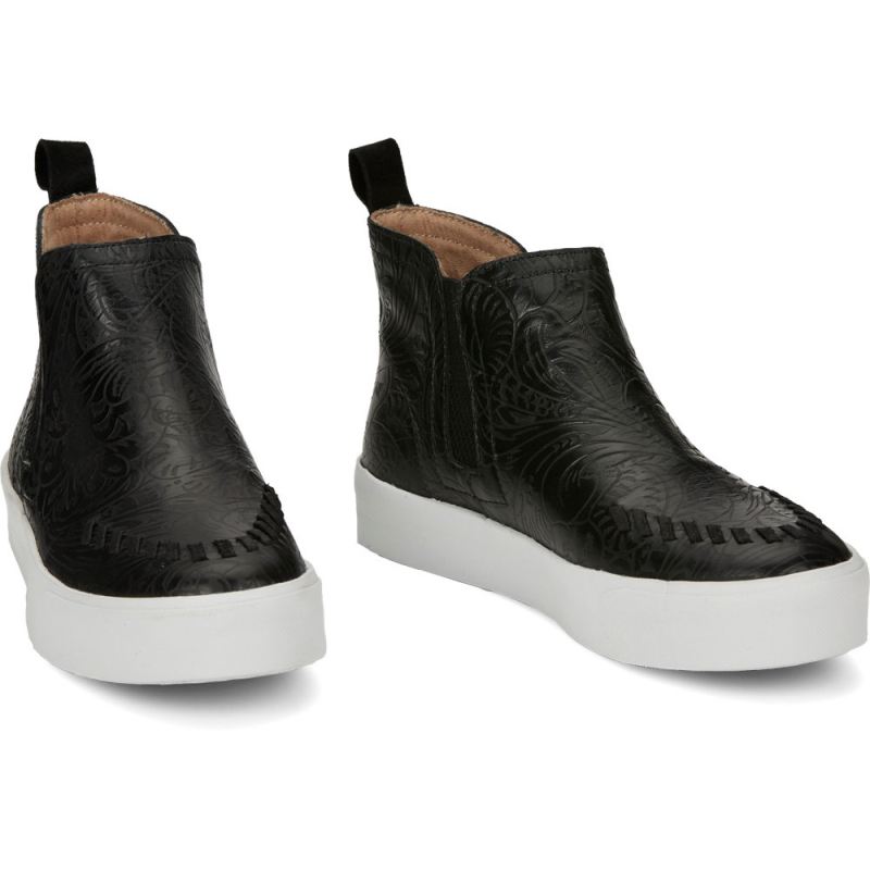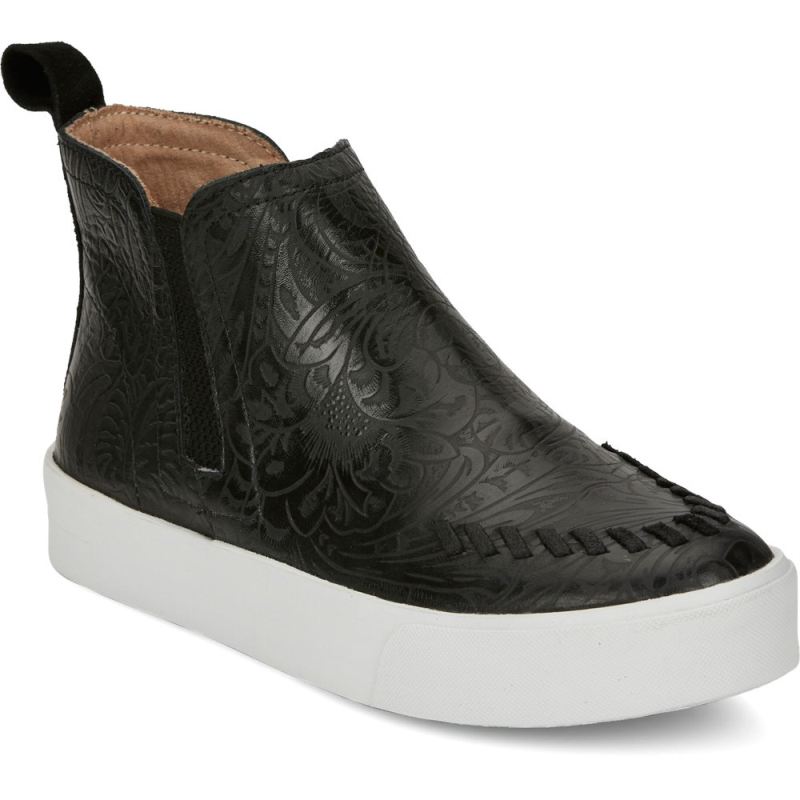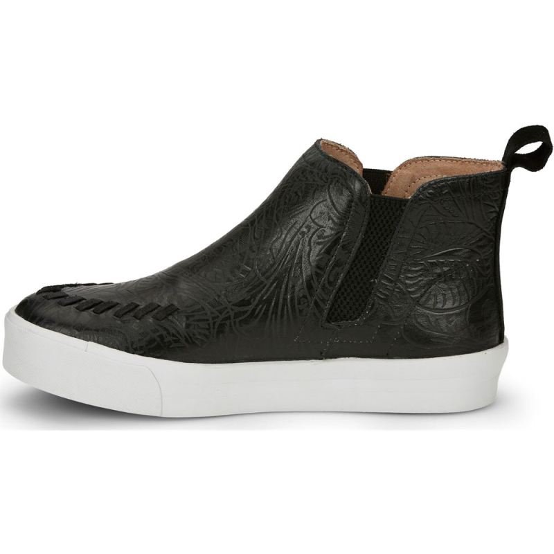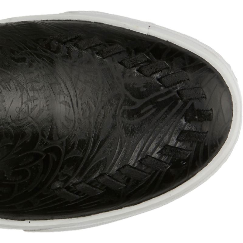 The Broadway sneaker in black floral makes a chic statement with its sweet but subtle embossing, and its cushioned insole delivers all-day comfort. Whipstitching adds to the signature look. A REBA by Justin Exclusive.
