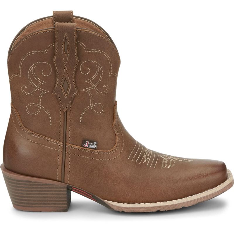 Distressed for a rugged, distinctive look, the 7" Chellie boot in Tan from the Justin Gypsy Collection is a timeless classic with a hint of modern flair.
