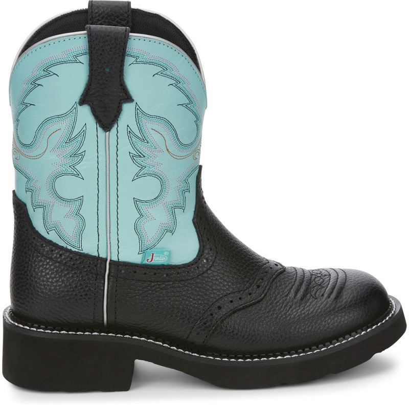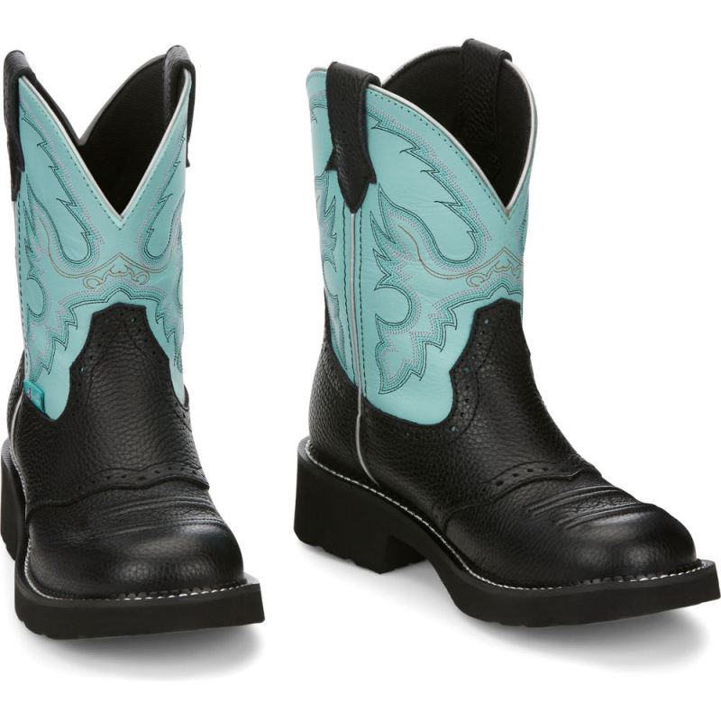 Sleek and chic, the 8 inch tall Gemma Light Blue Justin Gypsy Women's cowboy boot is ready to rodeo.