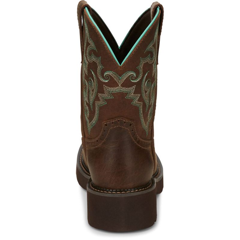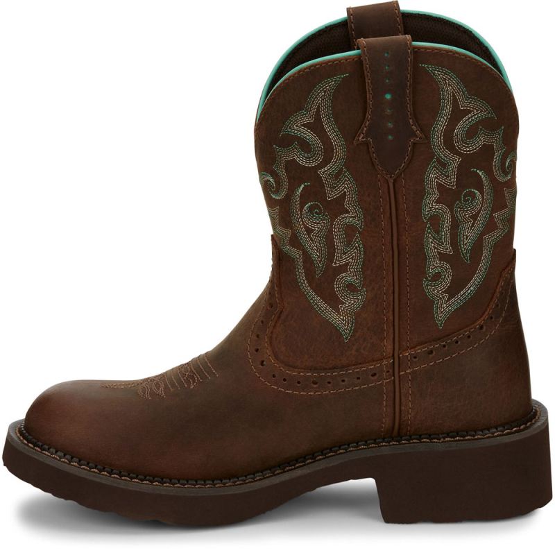 The 8" tall Gemma Dark Brown Short Justin Gypsy Women's cowboy boot is a modern take on a vintage classic.
