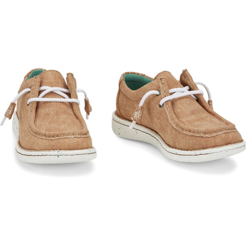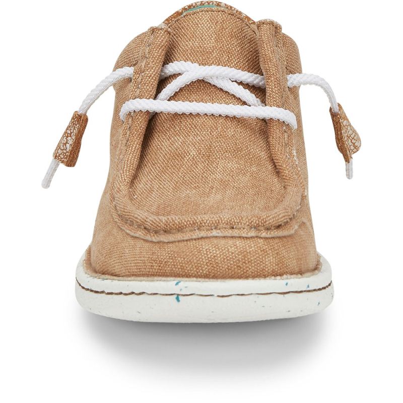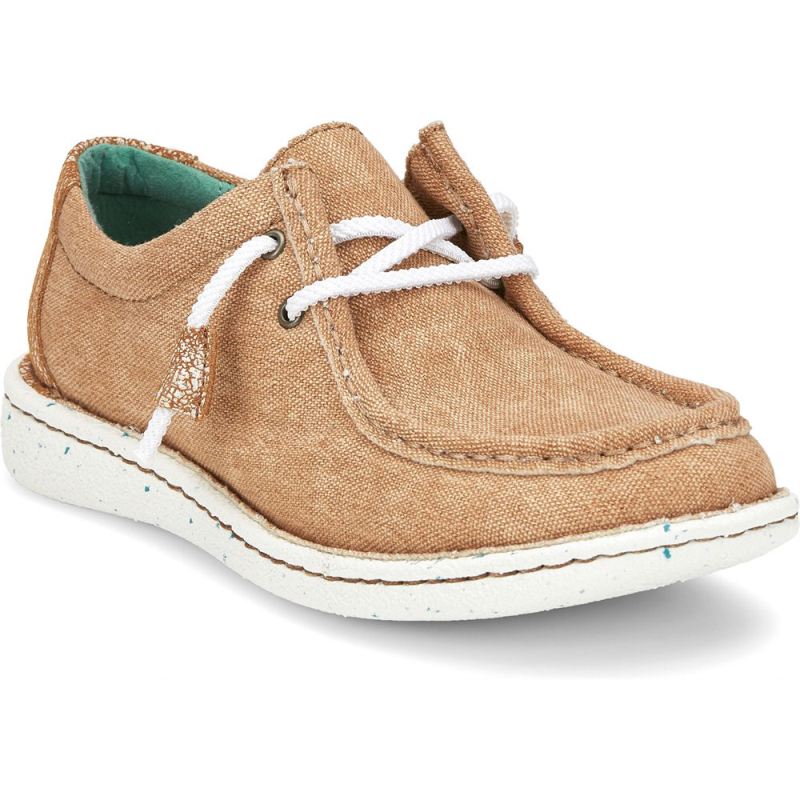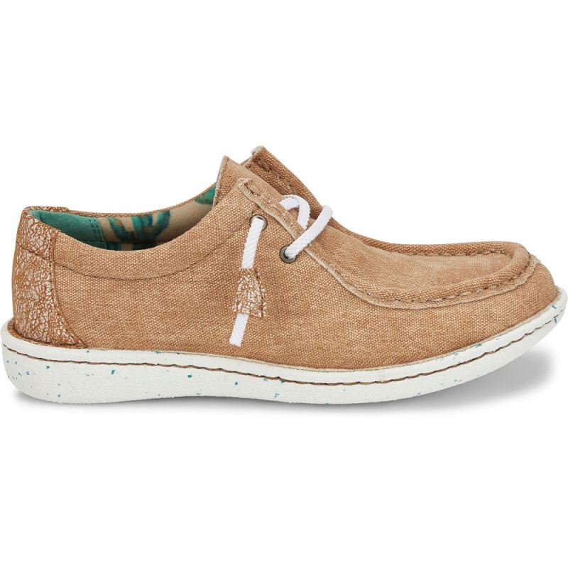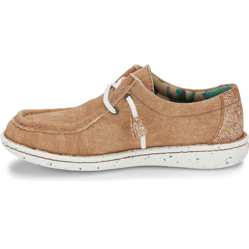 The women's Hazer in honey canvas from the Justin Casuals collection features laid-back moc-toe styling with a cushioned insole.