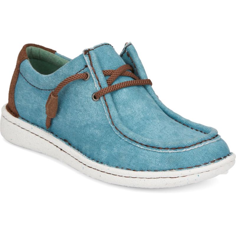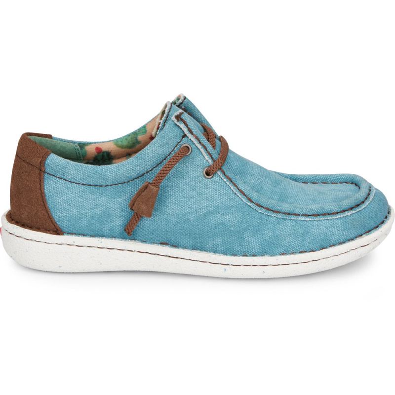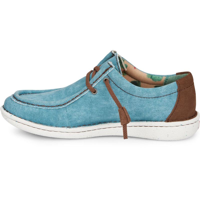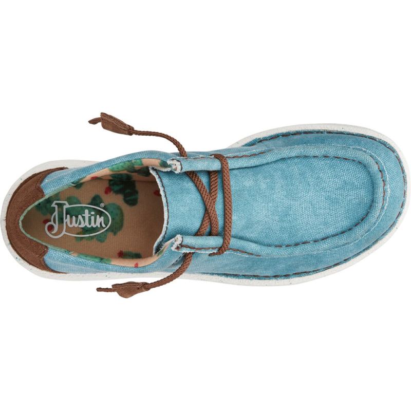 The women's Hazer in turquoise from the Justin Casuals collection features laid-back moc-toe styling with a cushioned insole.
