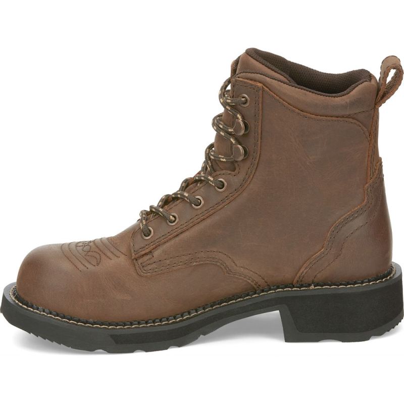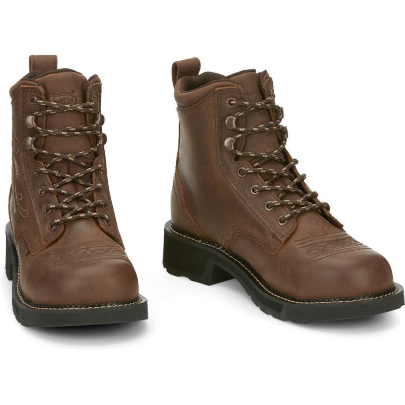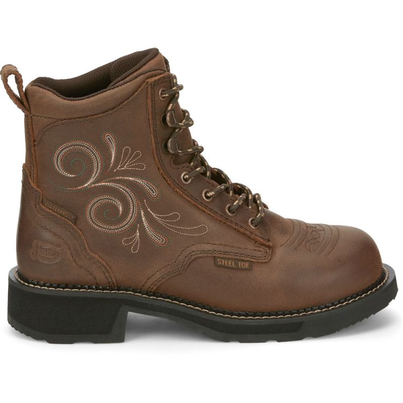 Work hard and look good while doing it in the Katerina Lace Up Waterproof Steel Toe 6" tall Justin Gypsy Women's work boot.
