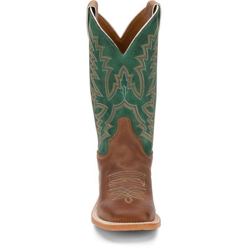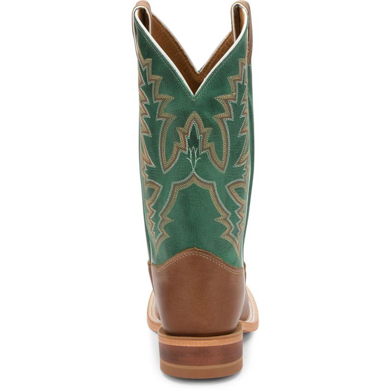 The emerald calfskin upper is an ornate backdrop to the striking gold stitch pattern and compliments the burnished tan foot. Its square toe, standard heel and J-Flex Flexible Comfort System" insoles allow for a relaxed and comfortable fit.