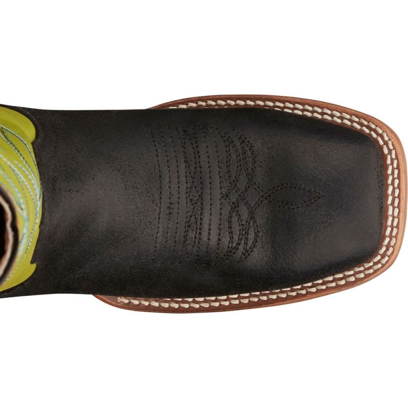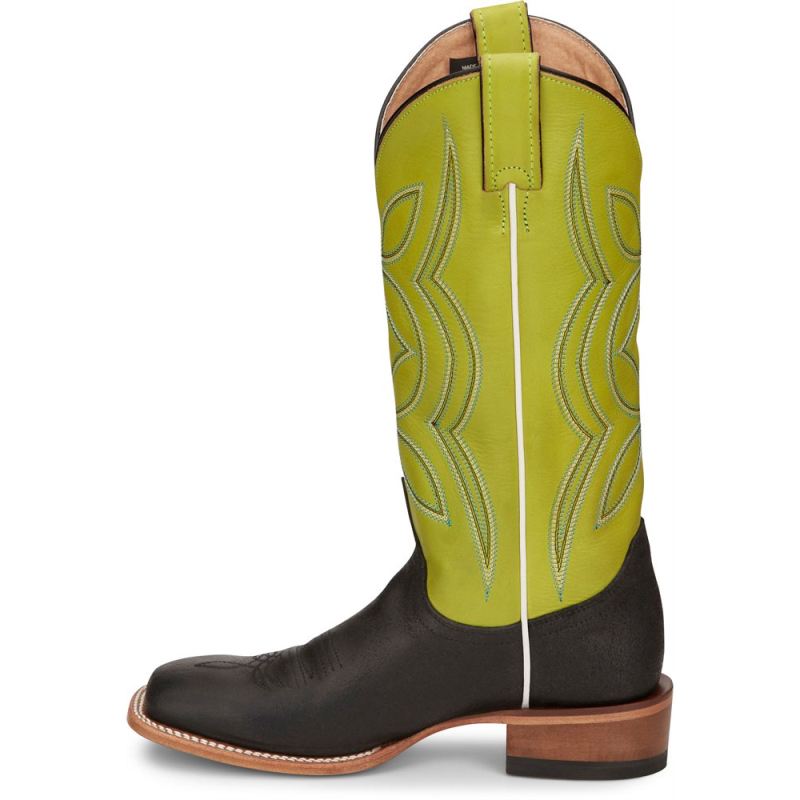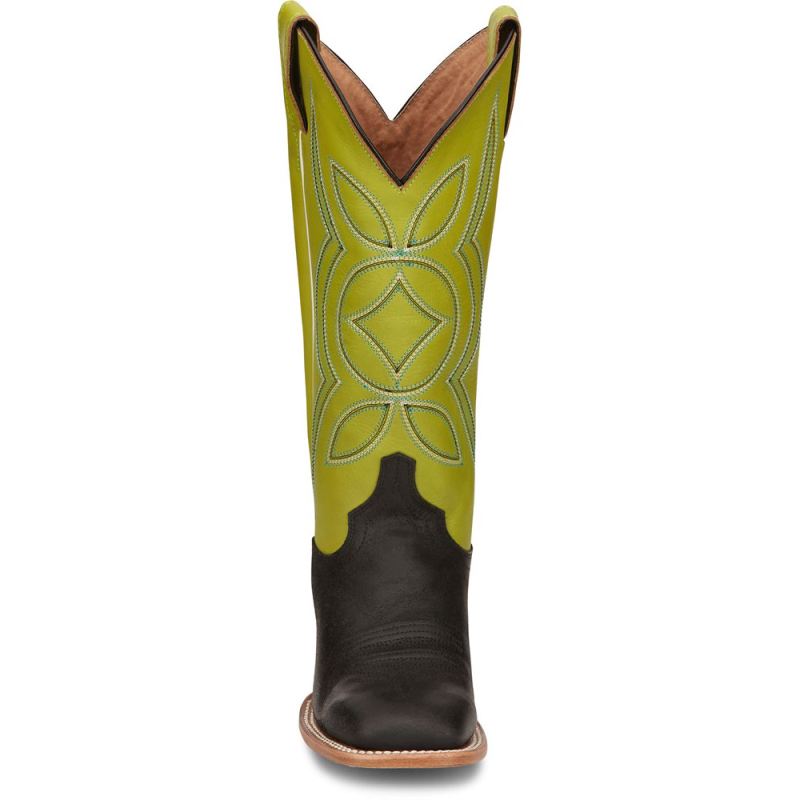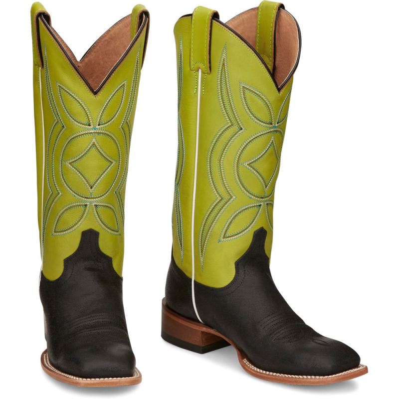 Bold stitching in a unique design on the lime green cowhide upper tops the dusk black cowhide vamp. A white side welt ties it all together for a modern take on a timeless silhouette. This vintage-inspired boot is both functional and comfortable. It features a block heel, a wide square toe, and the J-Flex" Comfort System. Our Punchy collection is crafted of durable leathers that are as tough as the women who put them to the test every day.