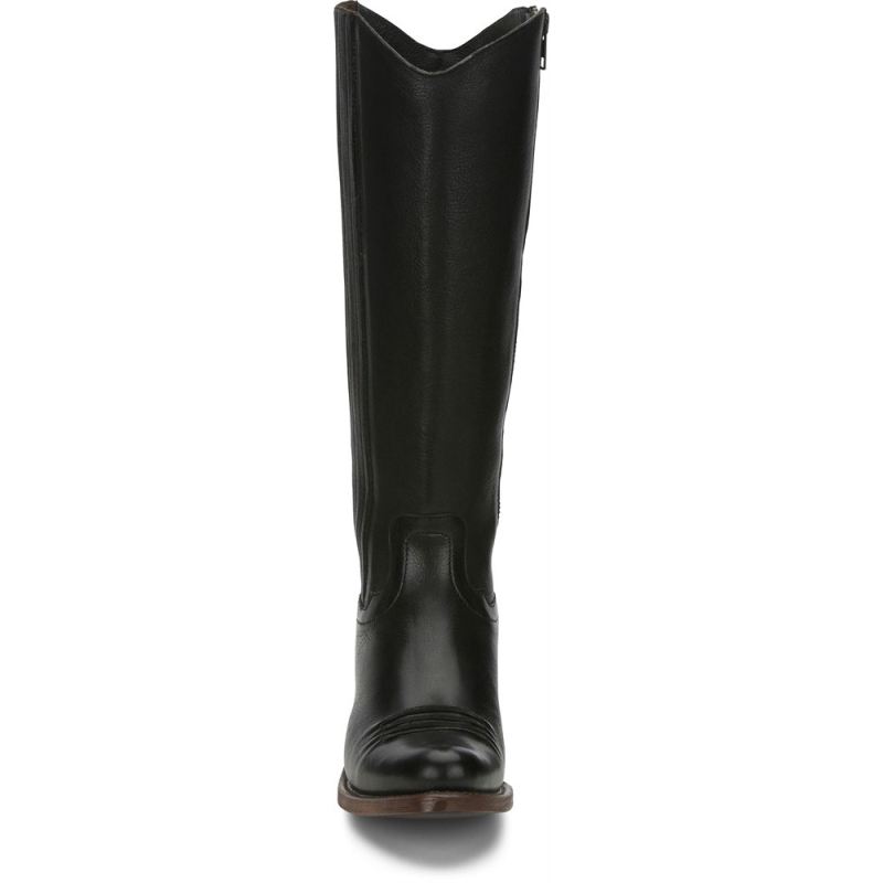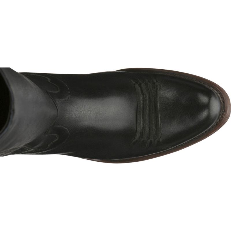 Sweeten your stride with this gorgeous riding boot silhouette, in smooth black cowhide designed with stylish stitching and hidden stretch panels for added comfort.