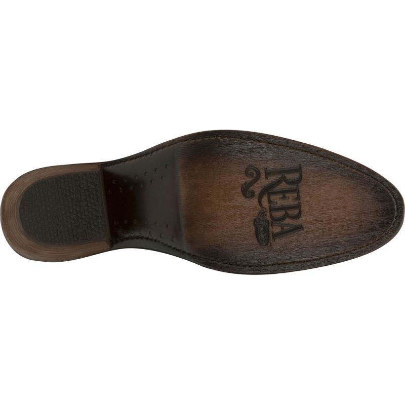 A side zipper makes it a breeze to step into, and the decorative toe stitch detail adds a signature touch. A Reba by Justin Exclusive."