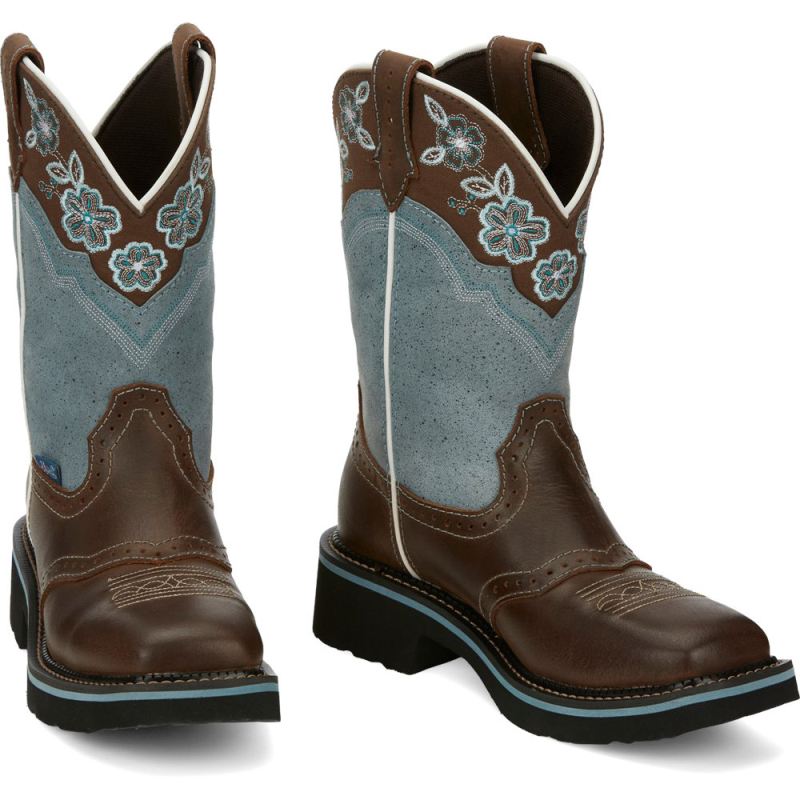 The 11" tall Starlina Blue Justin Gypsy Women's cowboy boot is an imaginative take on the traditional cowgirl boot.