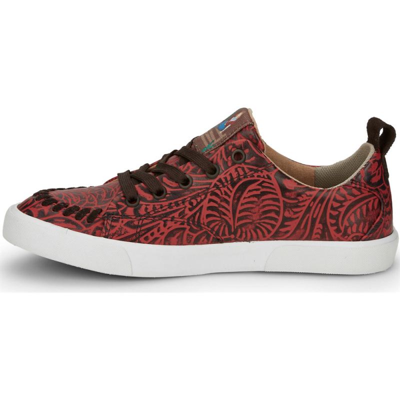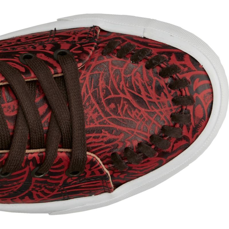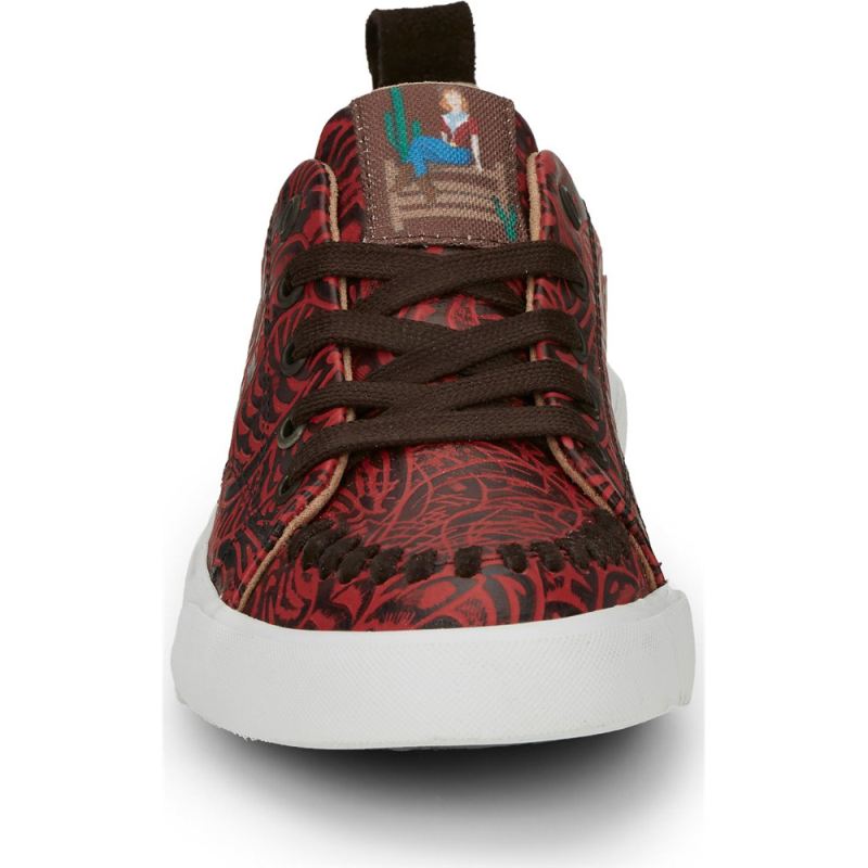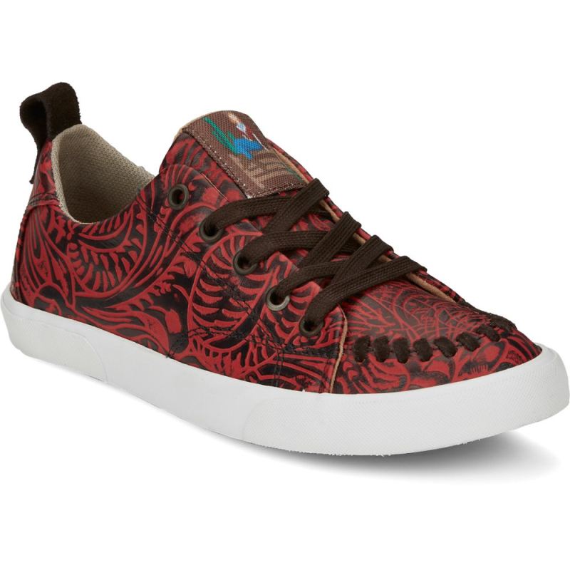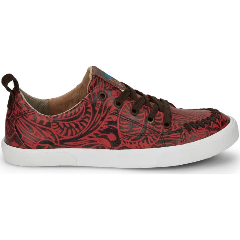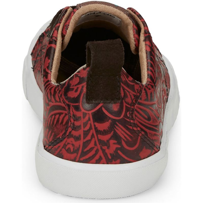 Rev up your casual look with unique western flair in our gorgeous Susie sneaker in red leather.