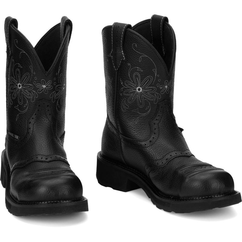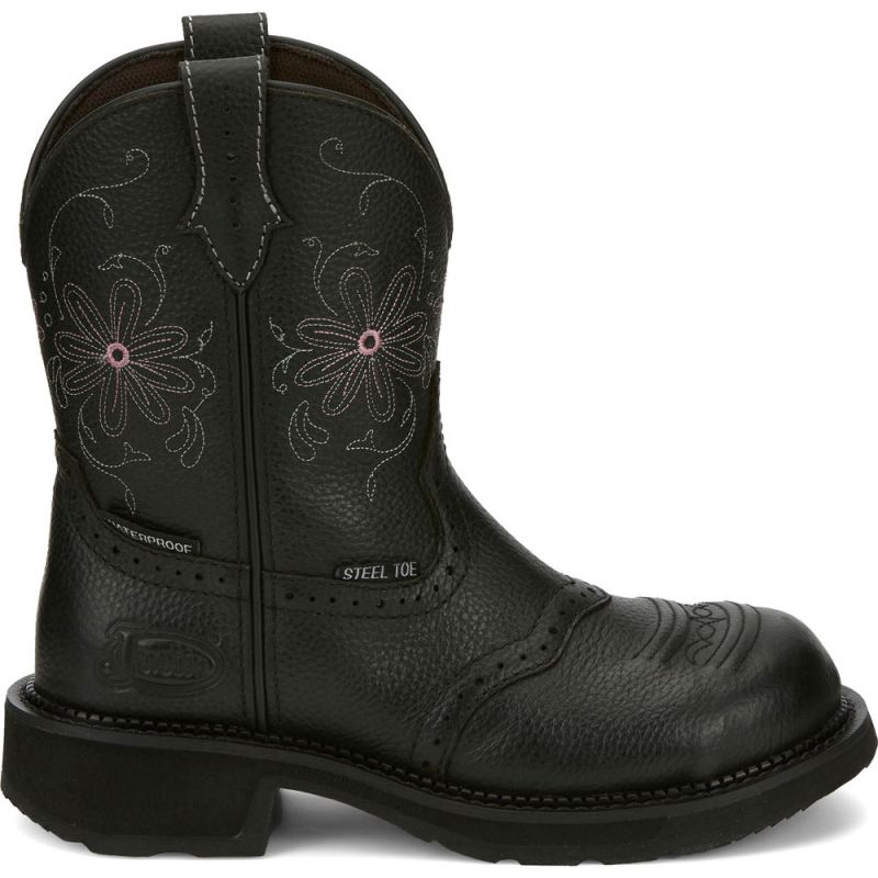 The Wanette Black Steel Toe is an 8" tall women's Justin Gypsy work boot that's an innovative take on the classic cowgirl boot.