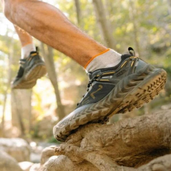 What we love most about hiking fast is experiencing more things. More sunrises from the overlook, more high fives at the summit, more post hike tea with friends back at the parking lot. And more terrain -asphalt to trail to scree to stone steps. So we took the room for your toes comfort, protection, and stability of our iconic hiker and gave it a running shoe feel with a waterproof, engineered knit upper and all terrain tread.