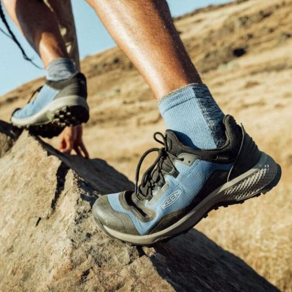 When you want to hike light and fast, the less resistance the better. That's where flex can help. So we took our proven hybrid hiker sneaker platform and added KEEN.BELLOWS FLEX at key flex points. For a men's waterproof hiking sneaker that flexes where you do.