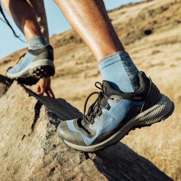 When you want to hike light and fast, the less resistance the better. That's where flex can help. So we took our proven hybrid hiker sneaker platform and added KEEN.BELLOWS FLEX at key flex points. For a men's waterproof hiking sneaker that flexes where you do.