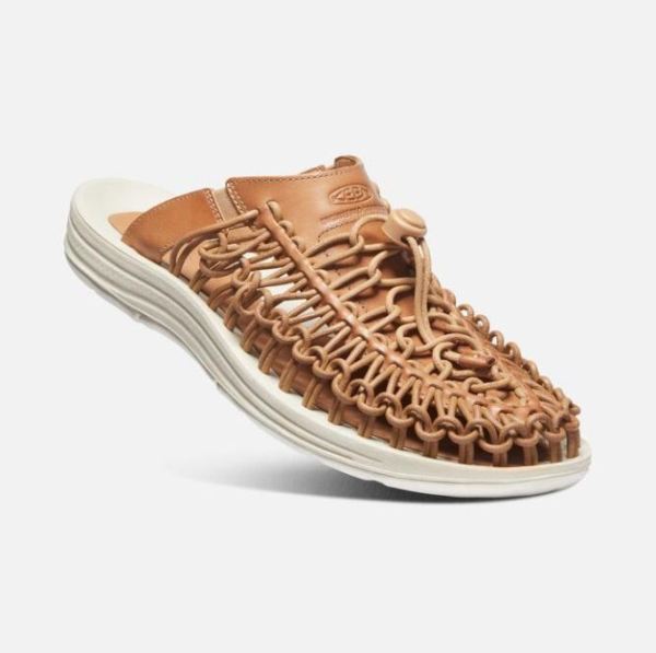 How could we make our UNEEK slide even more unique By turning it into a premium leather huarache with help from New York's Engineered Garments. The asymmetrical "twin" design smooth leather on the left, rough underside on the right makes it a men's leather slide like no other.